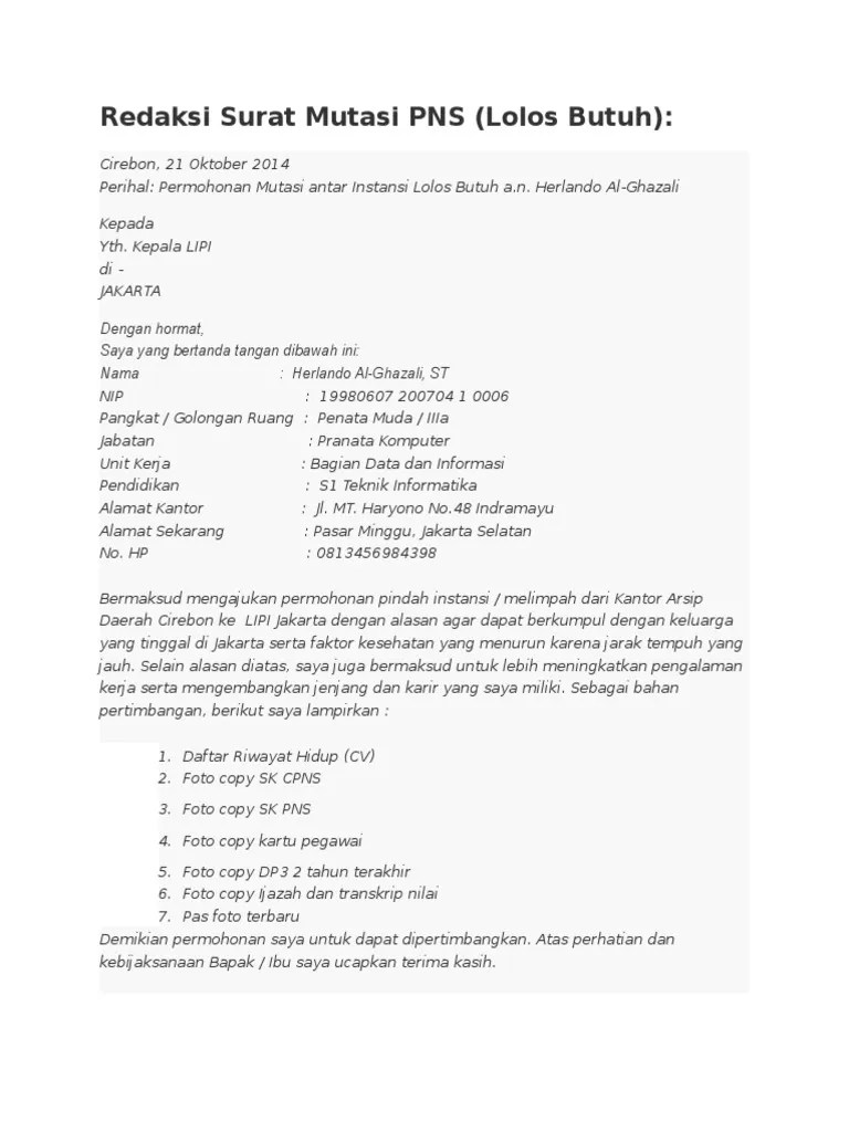 Permohonan mutasi antar instansi lolos butuh a n. Contoh redaksi surat mutasi pns . Bagian hukum dan kepegawaian, nama pos, mutasi pns dosen. Contoh surat lolos butuh pindah kerja . (8) pns yang tidak lolos konseling dibuatkan surat penolakan mutasi, dengan format sebagaimana dimaksud dalam lampiran vi peraturan bupati ini.