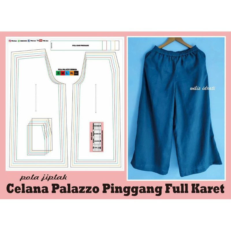 Pola celana kulot palazzo, pola kulot payung panjang, pola celana kulot karet, cara membuat celana kulot tanpa pola, pola celana kulot .